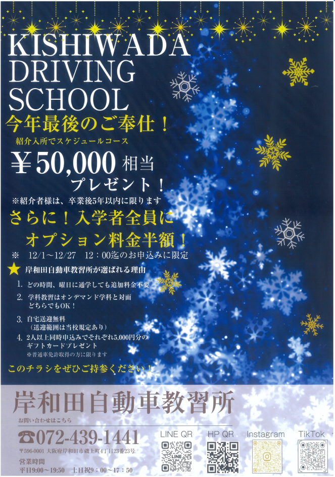 - 12月キャンペーン「今年最後のご奉仕!」